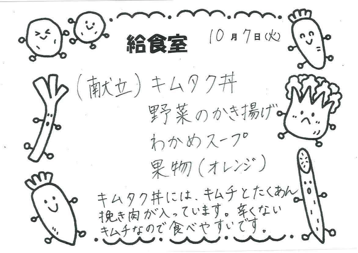 給食室 今日のメニュー