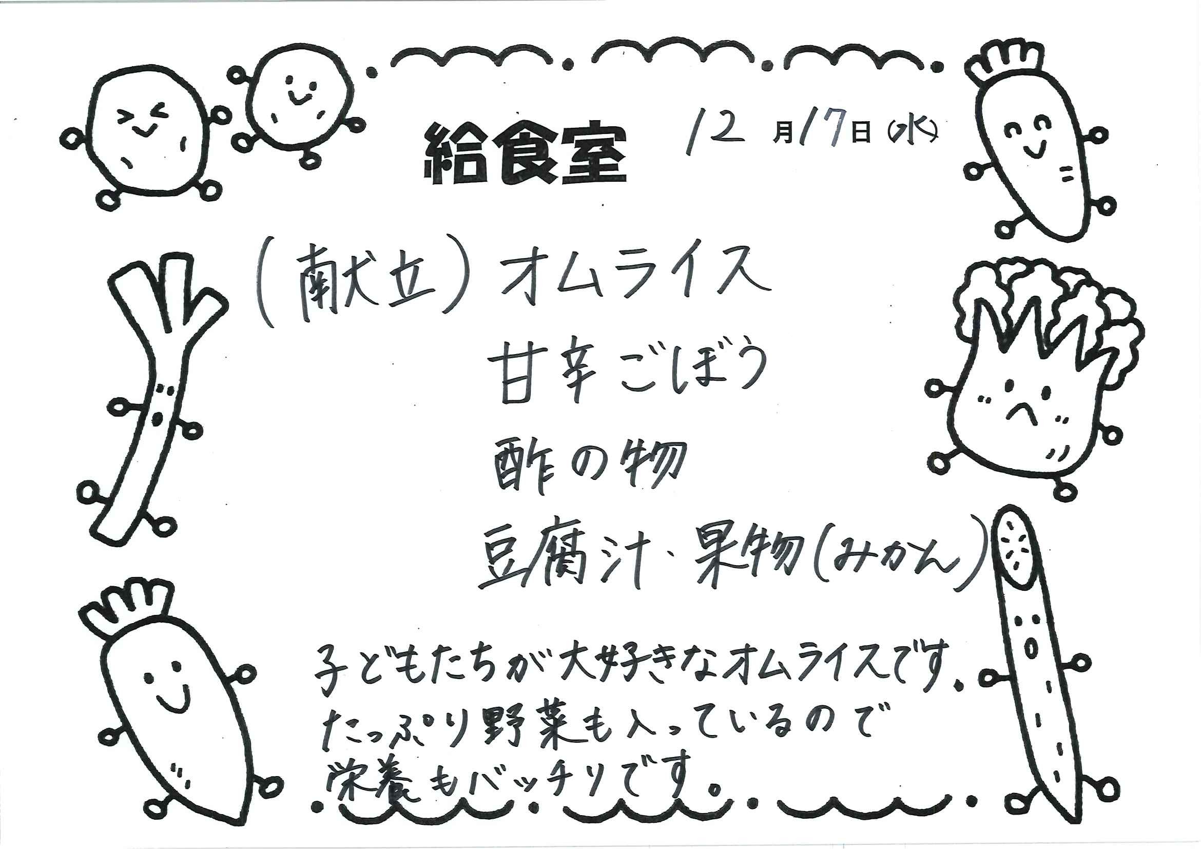 給食室 今日のメニュー
