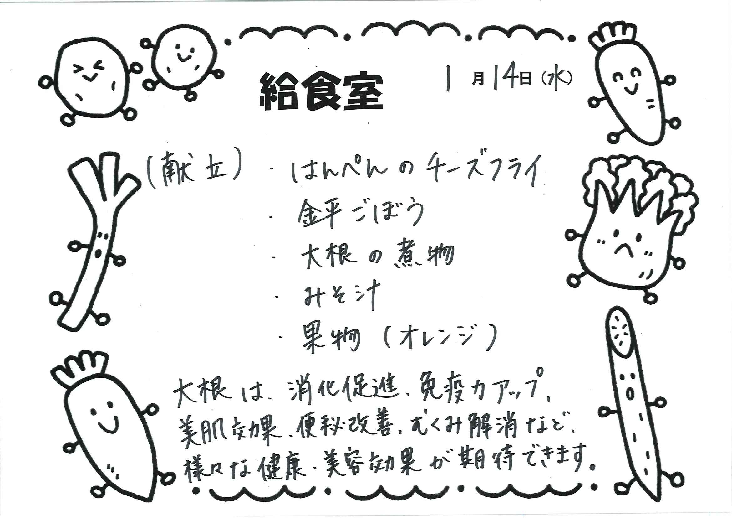 給食室 今日のメニュー