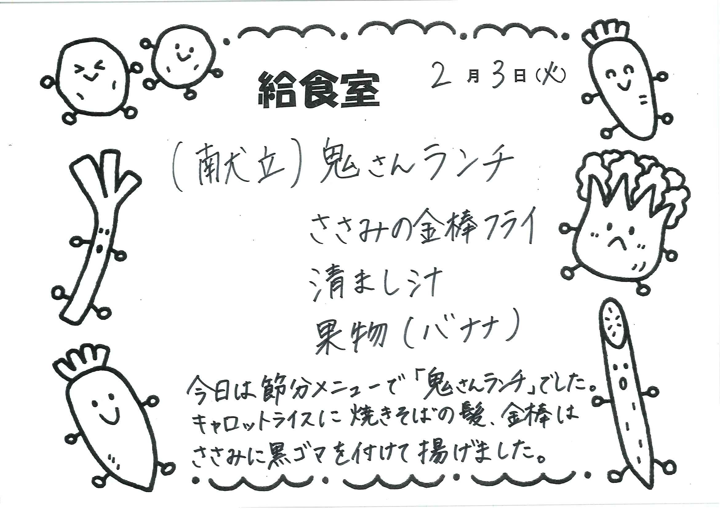 給食室 今日のメニュー