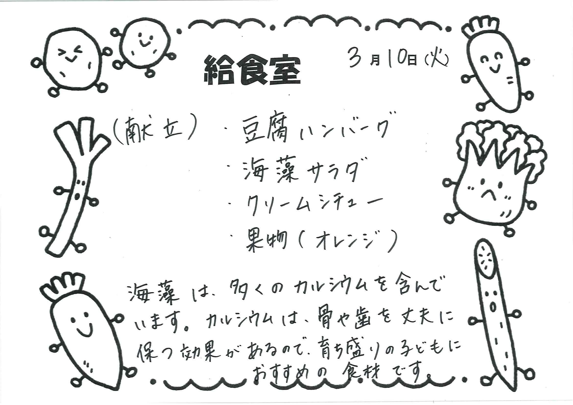 給食室 今日のメニュー
