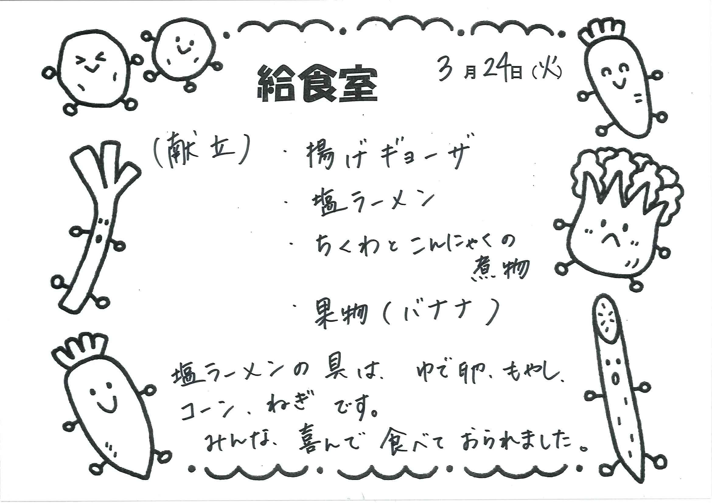 給食室 今日のメニュー